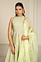 Featuring a neon green and grey anarkali in chanderi base with floral print and lace embroidery. It is paired with pants and an organza dupatta. Style this designer anarkali set with oxidised jhumkas and juttis for a festive ready-look.