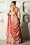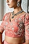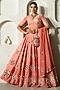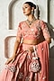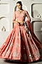 Featuring a peach lehenga in silk and organza base with mirror work. It is paired with a blouse, dupatta and potli bag. Accentuate it with dangler earrings and heels for sangeet, engagement or wedding ceremony.