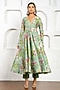 Pista Green Chanderi Floral Printed & Gota Work Anarkali Set