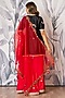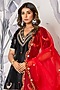 Featuring a black kurta in pure spun silk base with thread and marodi embroidery. It is paired with red sharara pants and an organza dupatta. Accentuate with statement jewellery and juttis for a festive ready look.