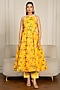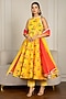 Yellow Chanderi Floral Printed & Lace Embroidered Anarkali Set