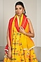 Featuring a yellow anarkali in chanderi base with floral print and lace embroidery. It is paired with pants and a two tone organza dupatta. Style this designer anarkali set with oxidised jhumkas and juttis for a festive ready-look.