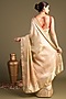 Beige Pure Katan Silk Block Printed Banarasi Handloom Saree Set
