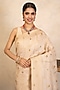 Featuring a beige handwoven saree in pure silk banarasi base with zari detail. It is paired with an unstitched blouse. Style it with kundan jewellery, potli and heels, perfect for a festive occasion, wedding or engagement ceremony.