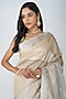 Featuring a beige banarasi handloom saree in tissue zari silk base with zari embroidery. It is paired with an unstitched blouse piece. Accentuate it with traditional gold jewellery, a neatly tied bun adorned with fresh gajra and classic heels for a stylish ensemble, ideal for wedding ceremonies, traditional celebrations, or festive occasions.