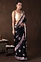 Featuring a black saree in pure katan silk base with floral hand embroidery. It is paired with an unstitched blouse piece. Accentuate it with traditional gold jewellery, a neatly tied bun adorned with fresh gajra and classic heels for a stylish ensemble, ideal for wedding ceremonies, traditional celebrations, or festive occasions.