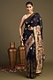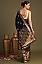 Featuring a black banarasi handloom saree in pure silk base with hand embroidery and block print. It is paired with an unstitched blouse piece. Accentuate it with kundan polki or gold jewellery, embellished heels and a potli bag for grand celebrations or intimate wedding ceremonies.