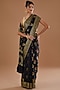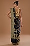 Featuring a black handwoven banarasi saree in pure silk handloom base with zari and resham embroidery. It is paired with an unstitched blouse. Style it with statement jewellery and heels for a wedding or festive occasion.