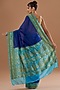 Featuring a blue handwoven saree in chiffon banarasi handloom base with zari embroidery. It is paired with an unstitched blouse. Style it with statement jewellery and heels for a wedding or festive occasion.