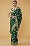 Featuring a bottle green handloom saree in pure silk banarasi base with zari details. It is paired with an unstitched blouse piece. Perfect wear for festive occasions, engagement ceremonies or a reception.
