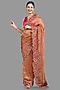 Featuring a brown handloom banarasi saree in crushed tissue silk base with motifs and floral cutwork. It is paired with an unstitched blouse. Accentuate it with kundan polki or gold jewellery, embellished heels and a potli bag for a wedding ceremony.