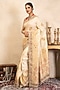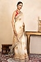 Featuring a cream handwoven saree in pure katan silk banarasi base with hand embroidery. It is paired with an unstitched blouse. Style it with kundan jewellery, potli and heels, perfect for a festive occasion, wedding or engagement ceremony.