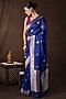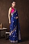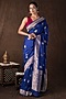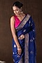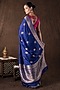 Featuring a dark blue banarasi handloom saree in pure katan silk base with zari motifs hand embroidery. It is paired with an unstitched blouse piece. Accentuate it with traditional gold jewellery, a neatly tied bun adorned with fresh gajra and classic heels for a stylish ensemble, ideal for wedding ceremonies, traditional celebrations, or festive occasions.