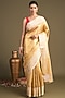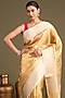 Featuring a gold handloom saree in pure katan tissue silk banarasi base with block print. It is paired with an unstitched blouse piece. Accentuate it with kundan polki or gold jewellery, embellished heels and a potli bag for grand celebrations or intimate wedding ceremonies.