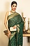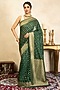 Featuring a bottle green saree in chiffon banarasi base with hand embroidery. It is paired with an unstitched blouse. Style it with kundan jewellery, potli and heels, perfect for a festive occasion, cultural event, mehendi or engagement ceremony.