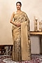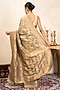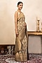 Featuring a grey saree in pure katan silk banarasi base with zari detail. It is paired with an unstitched blouse. Style it with kundan jewellery, potli and heels, perfect for a festive occasion, cultural event, wedding or engagement ceremony.