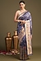 Featuring a grey banarasi handloom saree in pure silk base with block print and hand embroidery. It is paired with an unstitched blouse piece. Accentuate it with kundan polki or gold jewellery, embellished heels and a potli bag for grand celebrations or intimate wedding ceremonies.