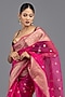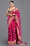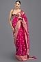 Featuring a hot pink saree in kora silk banarasi handloom base with zari embroidery and hand woven print. It is paired with a matching unstitched blouse.
