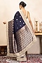 Navy Blue Pure Katan Silk Hand Embroidered Saree Set