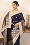 Featuring a navy blue saree in pure katan silk base with hand embroidery. It is paired with an unstitched blouse. Style it with kundan jewellery, potli and heels, perfect for a festive occasion, cultural event, wedding or engagement ceremony.