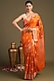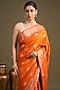 Featuring an orange banarasi handloom saree in pure moonga silk base with block print. It is paired with an unstitched blouse piece. Accentuate it with kundan polki or gold jewellery, embellished heels and a potli bag for grand celebrations or intimate wedding ceremonies.