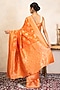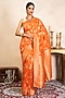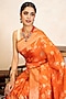 Featuring an orange saree in pure katan silk banarasi base with zari detail. It is paired with an unstitched blouse. Style it with kundan jewellery, potli and heels, perfect for a festive occasion, cultural event, wedding or engagement ceremony.