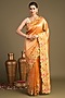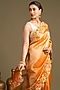 Featuring an orange banarasi handloom saree in pure tissue silk base with hand embroidery and floral print. It is paired with an unstitched blouse piece. Accentuate it with kundan polki or gold jewellery, embellished heels and a potli bag for grand celebrations or intimate wedding ceremonies.