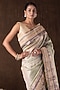 Featuring a pastel green banarasi saree in pure tissue silk base with hand embroidery. It is paired with an unstitched blouse piece. Accentuate it with traditional gold jewellery, a neatly tied bun adorned with fresh gajra and classic heels for a stylish ensemble, ideal for wedding ceremonies, traditional celebrations, or festive occasions.