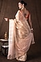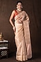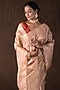 Featuring a peach and copper banarasi handloom saree in tissue silk base with hand embroidery. It is paired with an unstitched blouse piece. Accentuate it with traditional gold jewellery, a neatly tied bun adorned with fresh gajra and classic heels for a stylish ensemble, ideal for wedding ceremonies, traditional celebrations, or festive occasions.