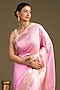 Featuring a pink banarasi handloom saree in pure silk base with brocade details and floral leaf print. It is paired with an unstitched blouse piece. Accentuate it with kundan polki or gold jewellery, embellished heels and a potli bag for grand celebrations or intimate wedding ceremonies.