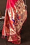 Featuring a pink banarasi handloom saree in tissue silk base with zari weave hand embroidery. It is paired with an unstitched blouse piece. Accentuate it with traditional gold jewellery, a neatly tied bun adorned with fresh gajra and classic heels for a stylish ensemble, ideal for wedding ceremonies, traditional celebrations, or festive occasions.