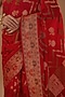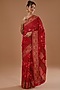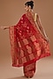 Featuring a red handwoven striped saree in chiffon banarasi handloom base with zari embroidery. It is paired with an unstitched blouse. Style it with statement jewellery and heels for a wedding or festive occasion.
