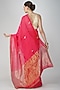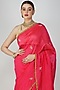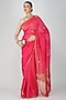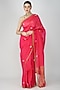 Featuring a red saree in pure chanderi silk base with hand embroidery. It is paired with an unstitched blouse. Accentuate it with statement earrings and heels for a festive occasion or pooja ceremony.