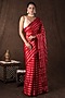 Featuring a red banarasi handloom saree in pure chanderi silk base with silver striped detailing and hand embroidery. It is paired with an unstitched blouse piece. Accentuate it with traditional gold jewellery, a neatly tied bun adorned with fresh gajra and classic heels for a stylish ensemble, ideal for wedding ceremonies, traditional celebrations, or festive occasions.