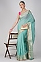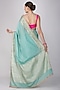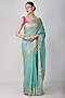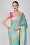Featuring a sea green handloom banarasi saree in pure silk base with hand embroidery. It is paired with an unstitched blouse. Accentuate it with kundan polki or gold jewellery, embellished heels and a potli bag for a wedding ceremony.
