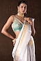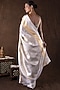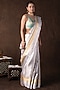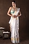 Featuring a silver banarasi handloom saree in kanjivaram silk base with zari weave hand embroidery. It is paired with an unstitched blouse piece. Accentuate it with traditional gold jewellery, a neatly tied bun adorned with fresh gajra and classic heels for a stylish ensemble, ideal for wedding ceremonies, traditional celebrations, or festive occasions.