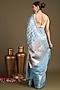 Featuring a sky blue banarasi handloom saree in pure silk base with block print and hand embroidery. It is paired with an unstitched blouse piece. Accentuate it with kundan polki or gold jewellery, embellished heels and a potli bag for grand celebrations or intimate wedding ceremonies.