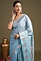Sky Blue Pure Silk Block Printed Banarasi Handloom Saree Set