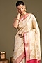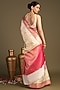 Featuring a white and pink handloom saree in pure silk zari banarasi base with floral leaf print. It is paired with an unstitched blouse piece. Accentuate it with kundan polki or gold jewellery, embellished heels and a potli bag for grand celebrations or intimate wedding ceremonies.