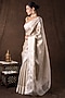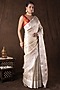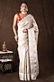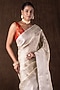 Featuring a white banarasi handloom saree in pure katan silk base with woven detailing. It is paired with an unstitched blouse piece. Accentuate it with traditional gold jewellery, a neatly tied bun adorned with fresh gajra and classic heels for a stylish ensemble, ideal for wedding ceremonies, traditional celebrations, or festive occasions.