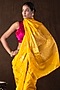 Featuring a yellow handloom saree in pure banarasi silk base with zari weave and motifs embellishment. It is paired with an unstitched blouse piece. Accentuate it with traditional gold jewellery, a neatly tied bun adorned with fresh gajra and classic heels for a stylish ensemble, ideal for haldi ceremonies, traditional celebrations, or festive occasions.