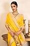 Featuring a yellow saree in pure katan silk banarasi base with zari detail. It is paired with an unstitched blouse. Style it with kundan jewellery, potli and heels, perfect for a festive occasion, cultural event, wedding or engagement ceremony.