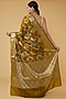 Featuring a yellow handloom saree in pure silk banarasi base with zari details. It is paired with an unstitched blouse piece. Perfect wear for festive occasions, engagement ceremonies or a reception.