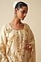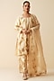 Featuring a beige kurta in pure chanderi silk base with embroidery. It is paired with pants and a premium organza dupatta. Accentuate it with jewellery, a clutch and block heels for festive occasions or wedding ceremonies.