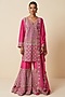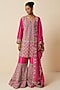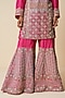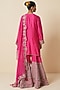 Featuring a fuchsia pink kurta in pure chanderi silk base with resham dabka, dori, french knot, sequin, zardosi, nalki, cutdana and moti embroidery. It is paired with embroidered sharara pants and a premium organza dupatta. Accentuate it with statement earrings, sleek heels, and a clutch for an elegant look, perfect for receptions or festive gatherings.