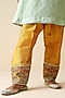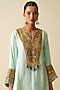Featuring a sea green and mustard kurta in mul chanderi base with embellishment. It is paired with cotton silk pants and a dupatta. Accentuate it with jewellery, a clutch and block heels for festive occasions or wedding ceremonies.
