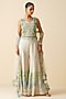 Featuring a silver blouse in tissue chanderi base with embroidery. It is paired with embroidered sharara pants and a net dupatta. Accentuate with statement earrings and heels for a festive occasion or wedding ceremony.