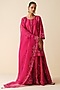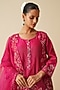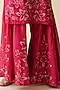Featuring a vibrant magenta kurta in pure chanderi silk base with embroidery. It is paired with sharara pants and a premium organza dupatta. Accentuate it with statement earrings, sleek heels, and a clutch for an elegant look, perfect for receptions or festive gatherings.