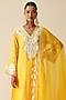 Featuring a yellow kurta in pure chanderi silk base with embroidery. It is paired with pants and a pure organza dupatta. Accentuate it with jewellery, a clutch and block heels for festive occasions or wedding ceremonies.