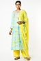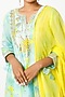 Featuring an aqua blue and bright yellow kurta in pure chanderi base. It is paired with matching cotton pants and a chiffon dupatta.
